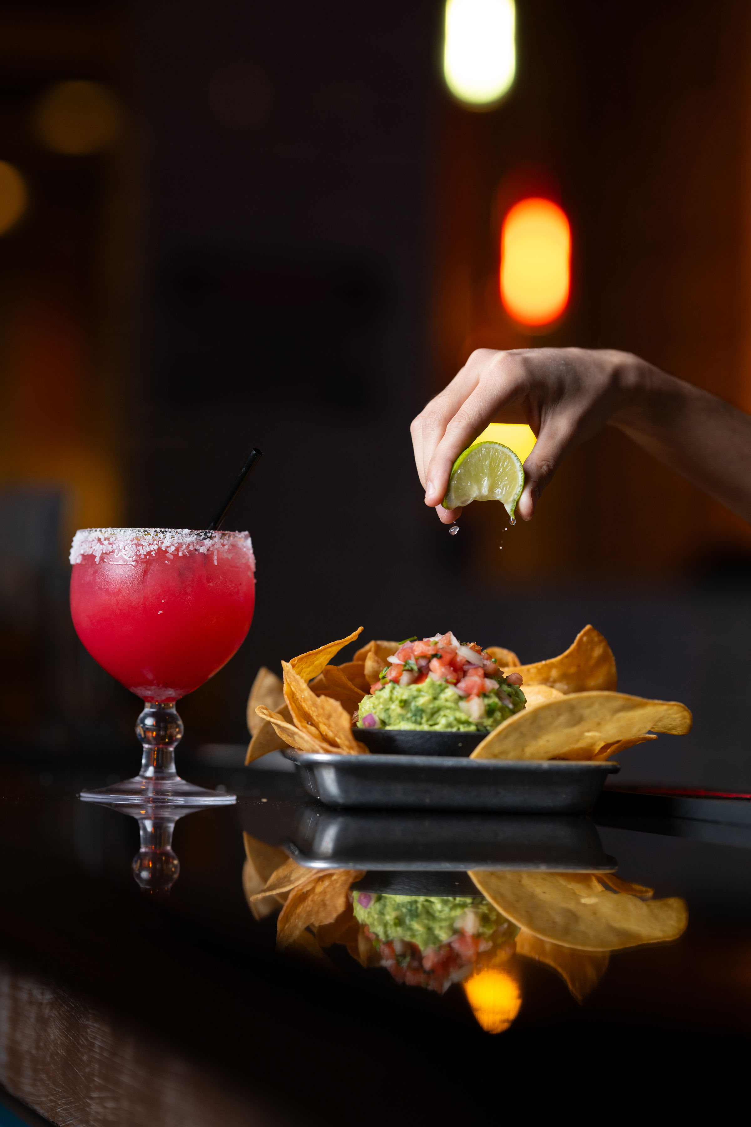 Avocado, onion, jalapeño, cilantro, tomato, lime, totopos